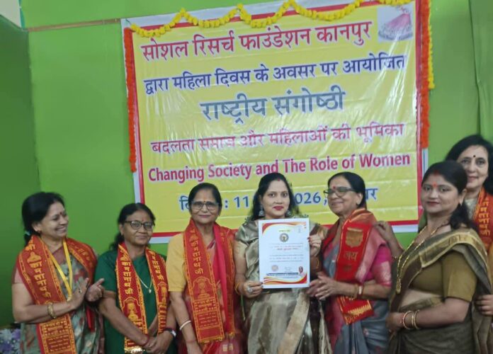 कानपुर: किदवई नगर स्थित सोशल रिसर्च फाउंडेशन, कानपुर की ओर से बुधवार को अंतरराष्ट्रीय महिला दिवस के उपलक्ष्य में “बदलता समाज और महिलाओं की भूमिका” विषय पर राष्ट्रीय संगोष्ठी, होली मिलन और सम्मान समारोह का आयोजन दो सत्रों में किया गया। कार्यक्रम में वक्ताओं ने बदलते सामाजिक परिवेश में महिलाओं की बढ़ती भागीदारी और उनके सशक्तिकरण पर जोर दिया।